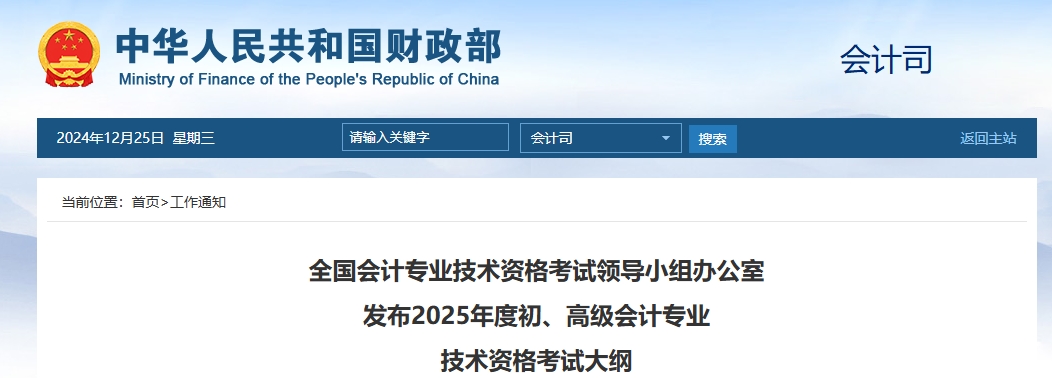 为明确2025年度初、高级会计专业技术资格考试评价标准,全国会计专业技术资格考试领导小组办公室制定了2025年度初、高级会计专业技术资格考试大纲,现予发布。