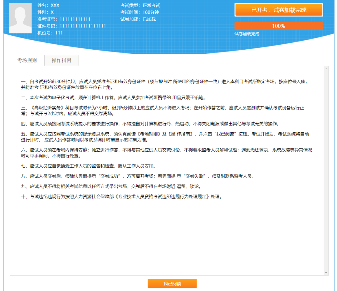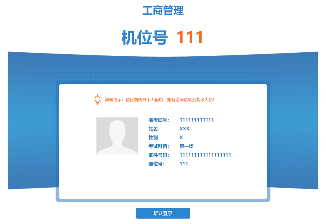 ②之后按照提示,进入考场(无需输入准考证号及身份证号,系统默认)