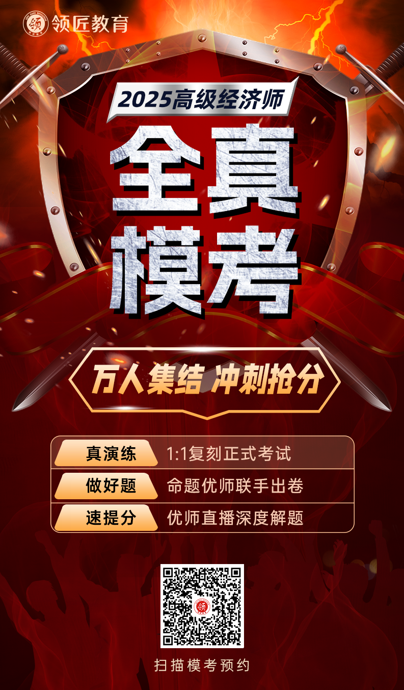 重要通知!领匠教育2025年高级经济师第一次大型模考将于5月25日正式上线,现已开启预约通道,需要同学们在参考前完成预约↓(完成预约才能参加考试哦!)