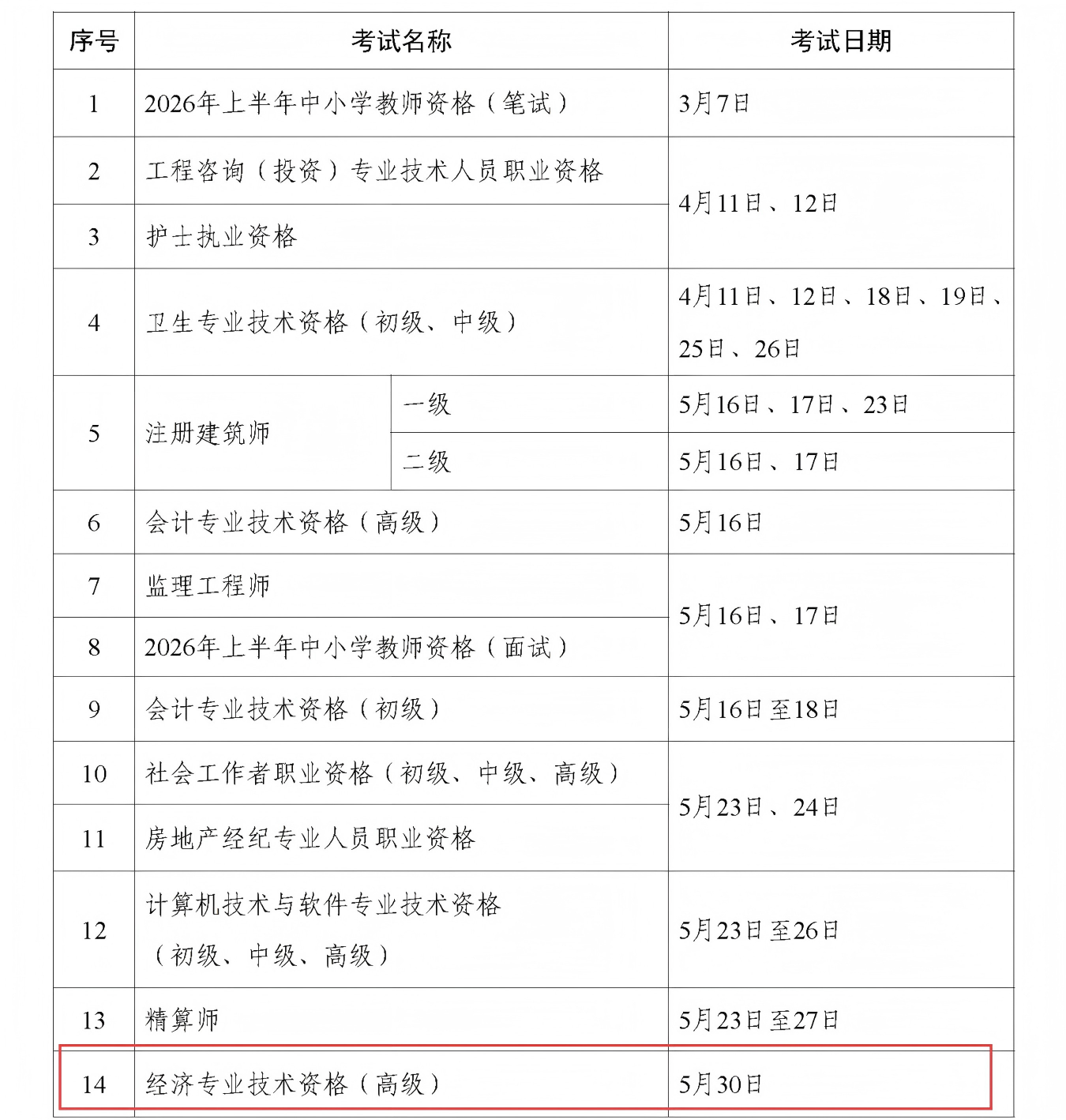 为切实做好专业技术人员职业资格考试规划与管理工作,方便广大专业技术人员参加职业资格考试,经征求有关部门同意,现就2026年度专业技术人员职业资格考试工作计划及有关事项通知如下: