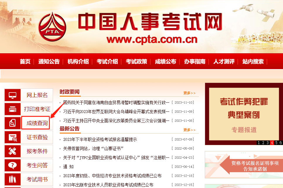 (1)第一步:登录中国人事考试网:http://www.cpta.com.cn/index.html 点击左侧“成绩查询”